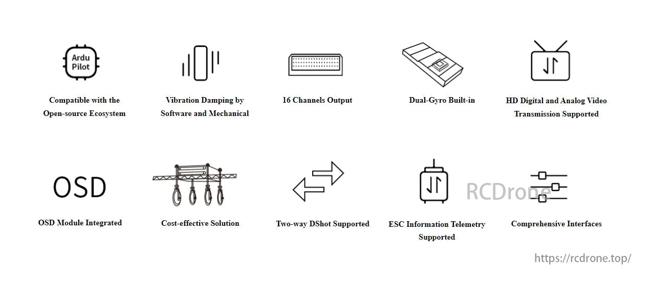 ArduPilot Ecosystem Support: Fully compatible with ArduPilot, QGroundControl, Mission Planner, MAVSDK, MAVLink, ROS, and UAVCAN.