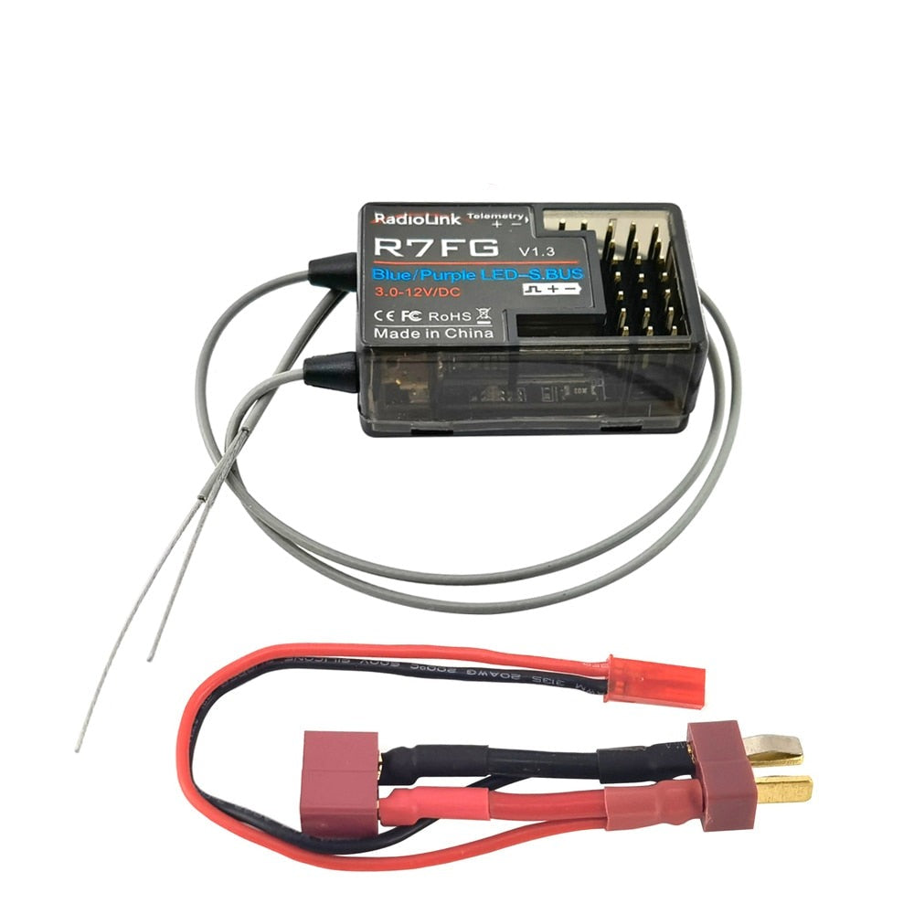 The RadioLink R7FG 2.4GHz receiver (waterproof) will be packed with the RC6GS V3. The PCB board and pins have undergone the same waterproof treatment as those found on mobile phones, utilizing nano-coating technology.