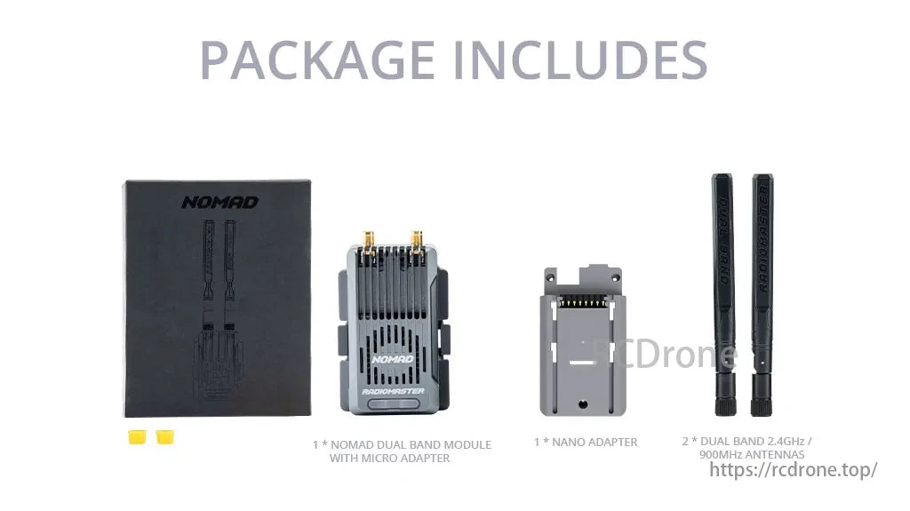 Package includes: Nomad dual band module with micro adapter, nano adapter, and two dual band antennas.