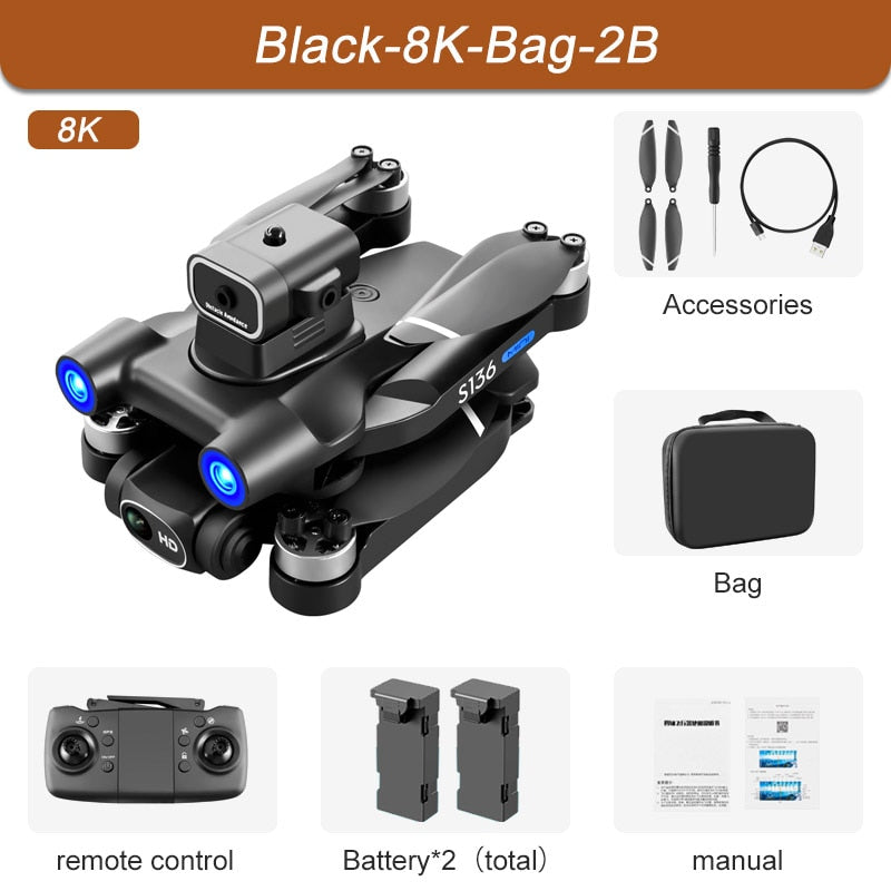 S136 GPS Drone - 4K Professional 8K Dual ESC Camera Optical Flow Positioning Obstacle Avoidance Brushless RC Foldable Quadcopter
