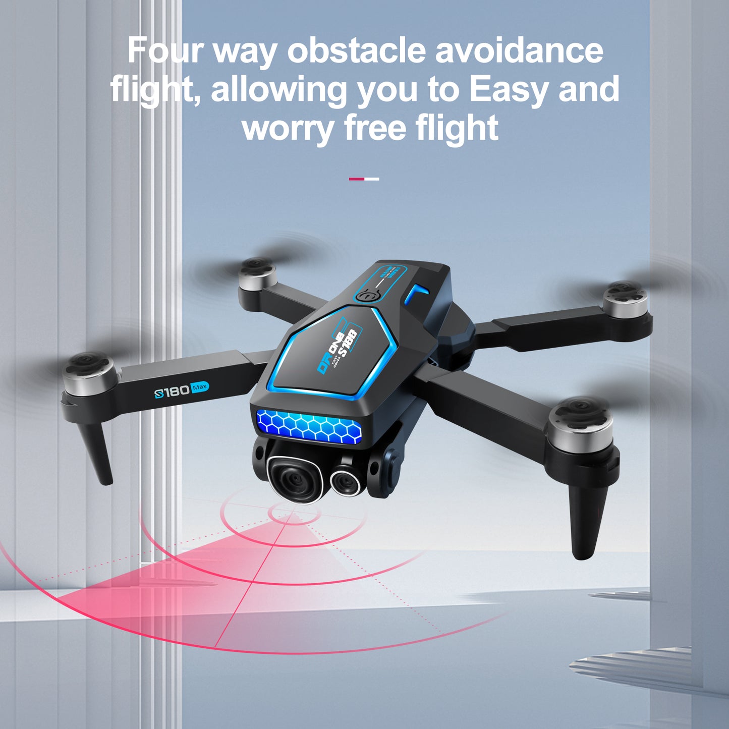 S180 Drone: A powerful upgrade with intelligent perception, offering horizontal and vertical 360-degree stunt rolls, obstacle avoidance, and features like real-time high-definition video transmission, one-click takeoff, headless mode, and more.