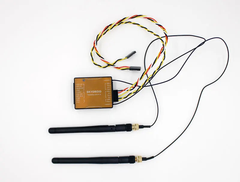 Skydroid M12 Pro Remote Controller: Telemetry & remote control with dual redundant design, supporting fixed-wing, copter, robots, and underwater drones. Features include adjustable parameters via APP, simplified operation steps, Bluetooth/USB connectivity, and powerful ground station APP. The controller uses FHSS spread spectrum technology for stable links, long battery life, and full-angle transmission system. With a built-in 4,000mAh antenna, it measures packet loss at 30-60 km and features forward error correction. Battery life is up to 30 hours. The mini-sized controller has strong expansibility, an embedded folding design, and provides SDK and protocol documents for developers.