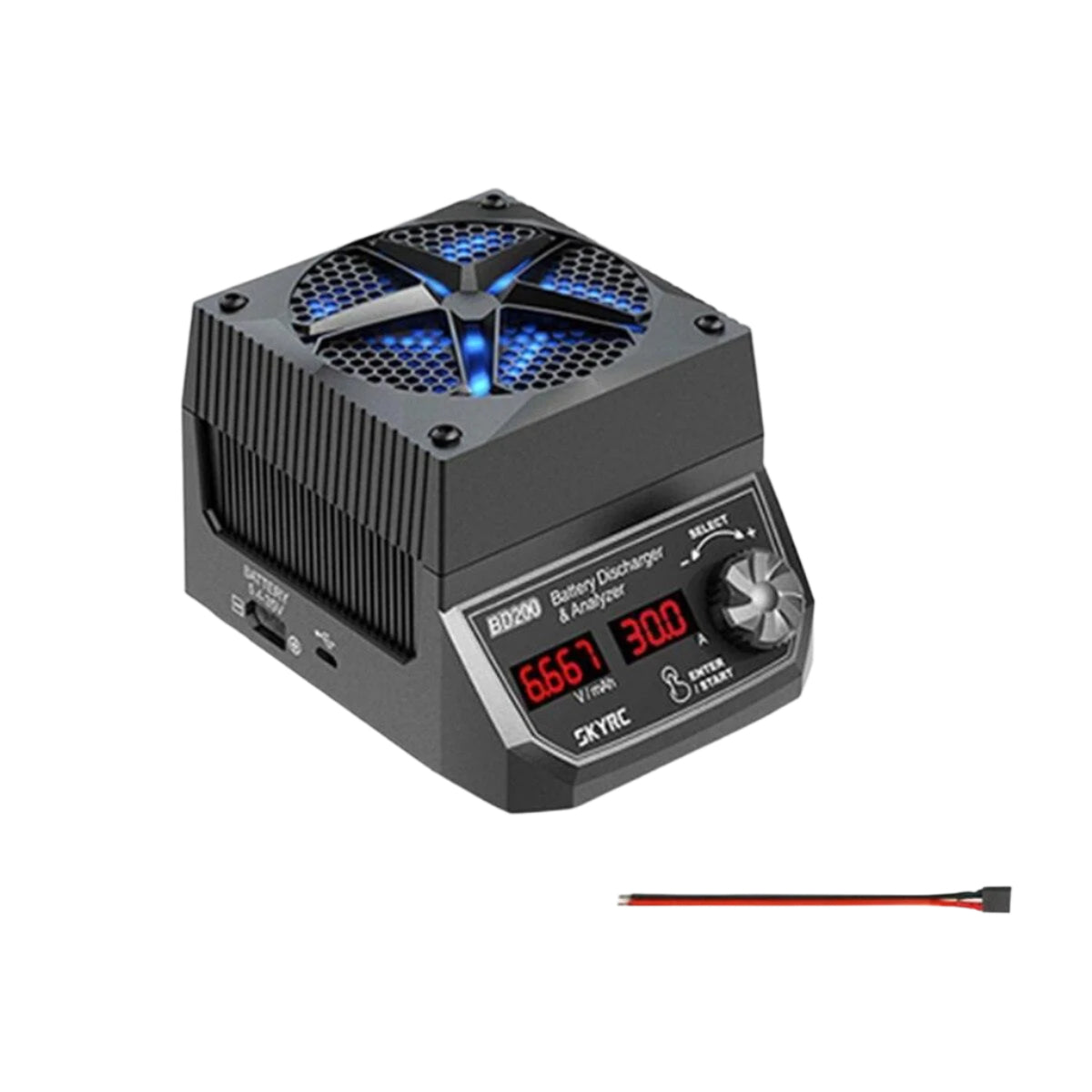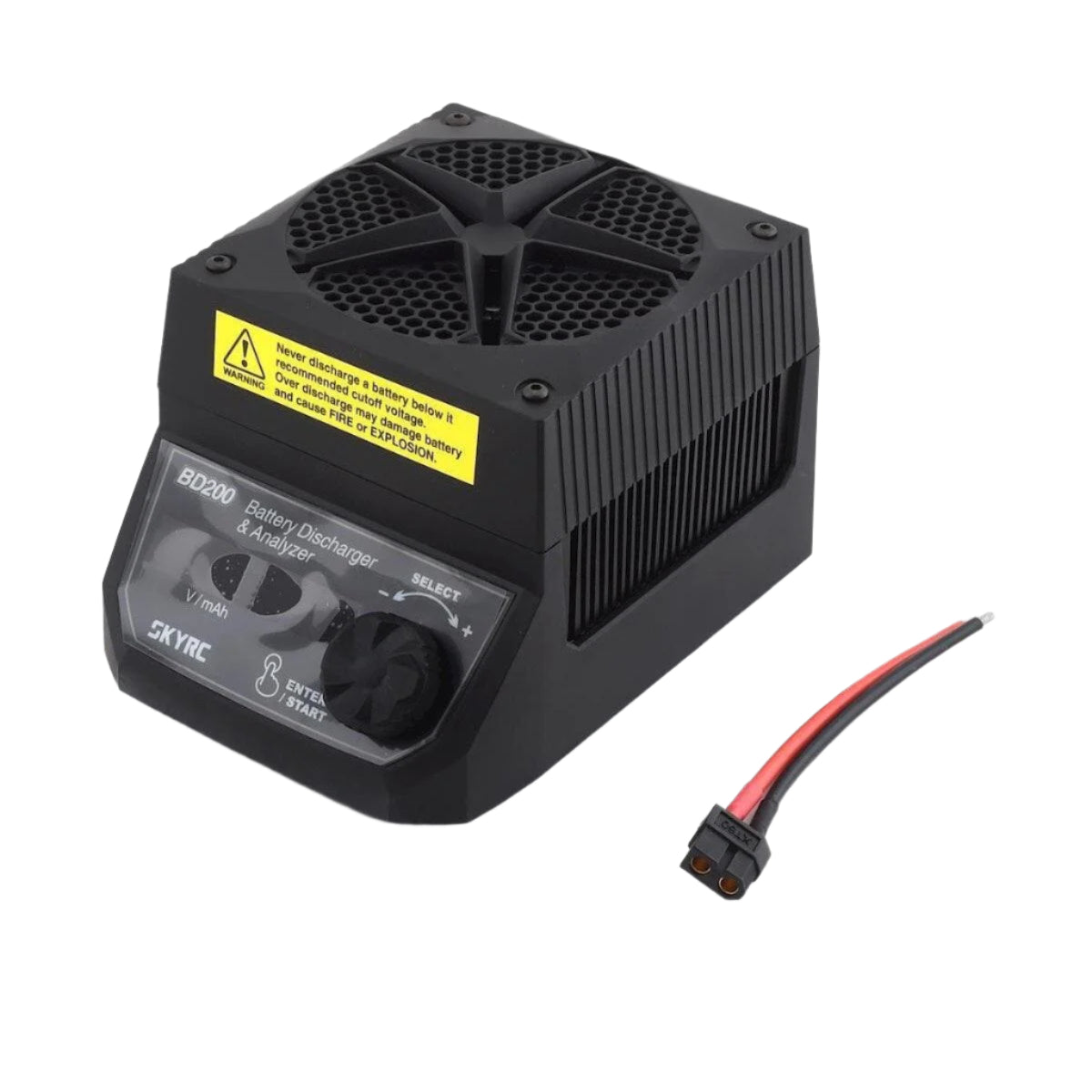 Skyrc BD-200: FPV Battery Discharger & Analyzer. This device displays real-time battery voltage, discharged capacity, and discharge current in order to help you test and select LiPo batteries with the desired capacity.