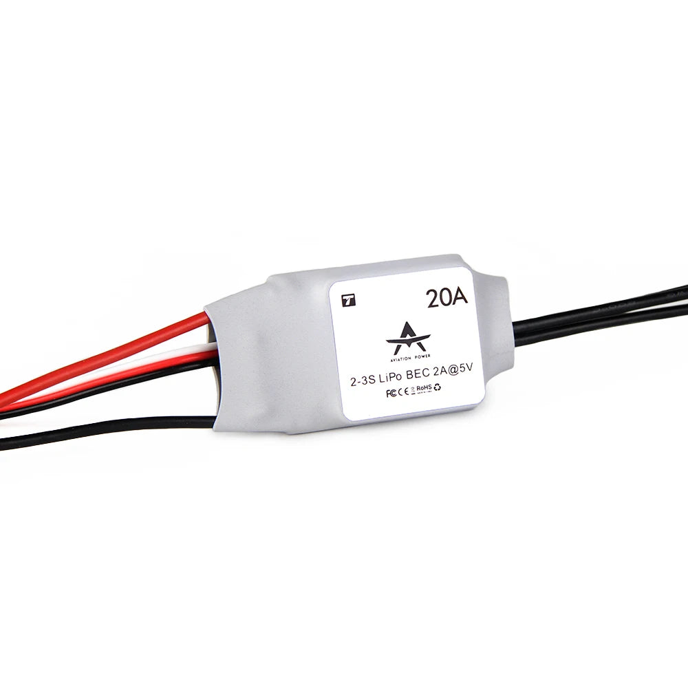 The AT series speed controller features a built-in BEC (Battery Eliminator Circuit) that provides a stable and high-efficiency output, ensuring safe operation in various power supply environments.