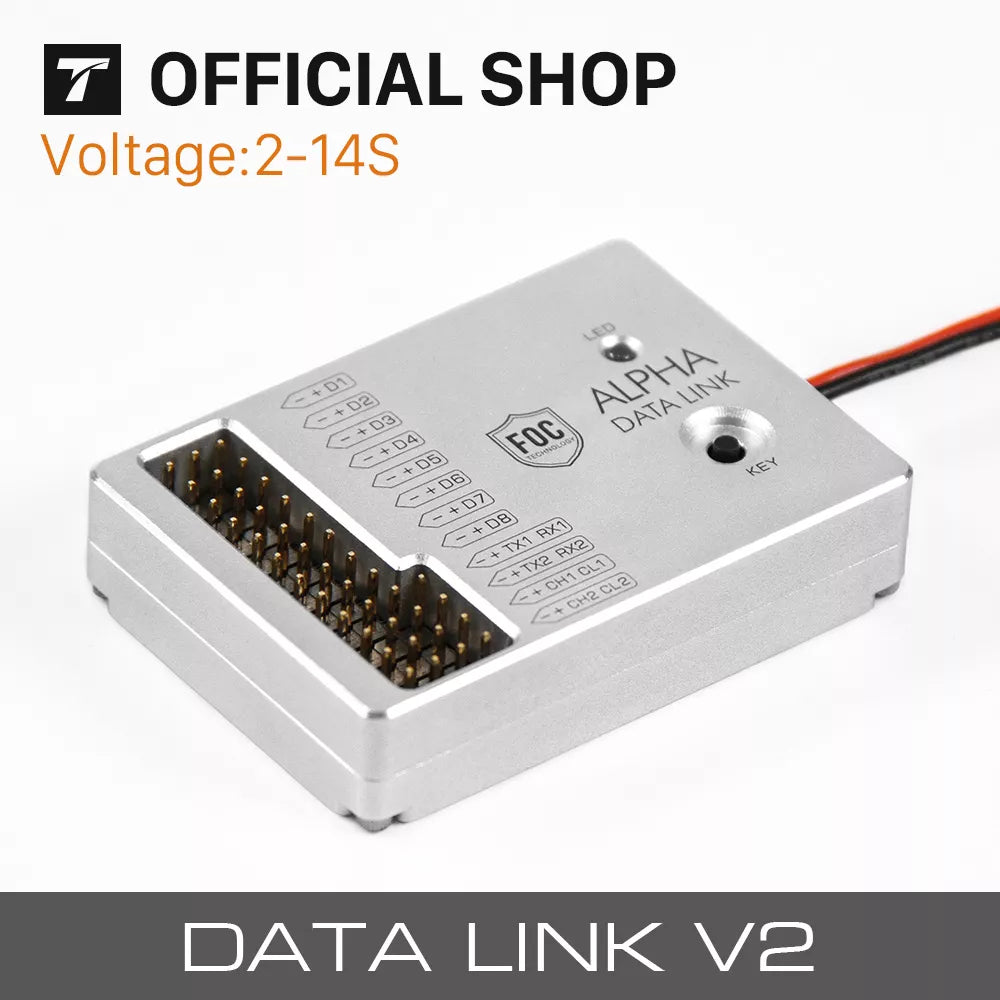DATA LINK V2 is a communication facility of ALPHA ESC for data collection, storage and transmission . it is capable of real-time monitoring and logging of propulsion system for purposes of failure data analysis and operation conditions . improper use including but not limited to over loading may result in injury and damage to human and devices.