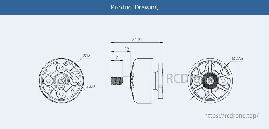 | Weight (w/ Cable) | 33.2g (1950KV) / 33.8g (2550KV) |