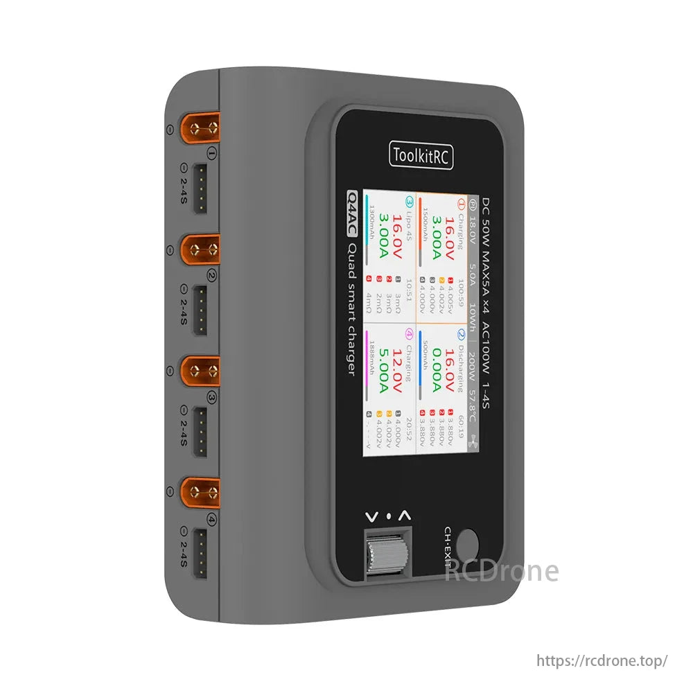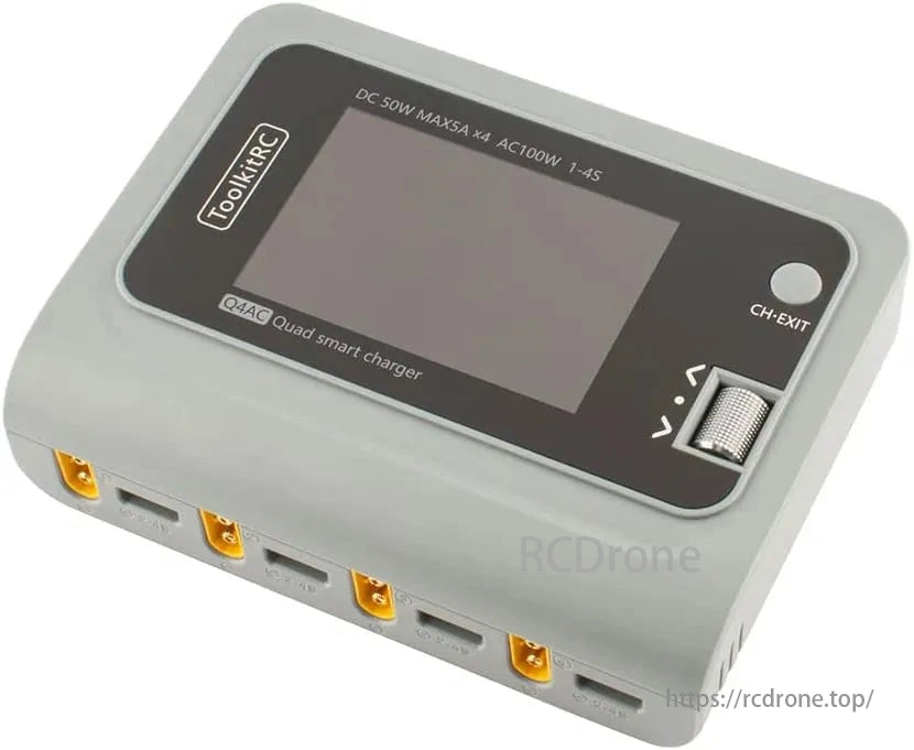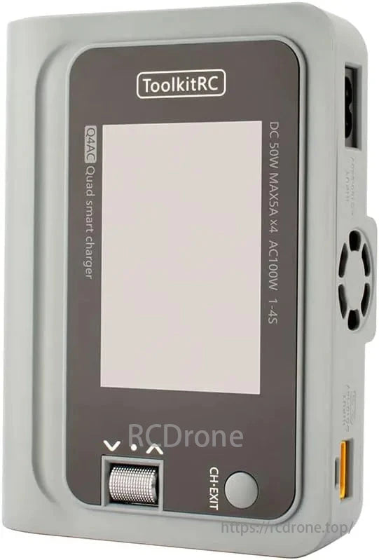 ToolkitRC Q4AC 1-4S Charger has a bright IPS display and a 32-bit ARM processor for precise charging.