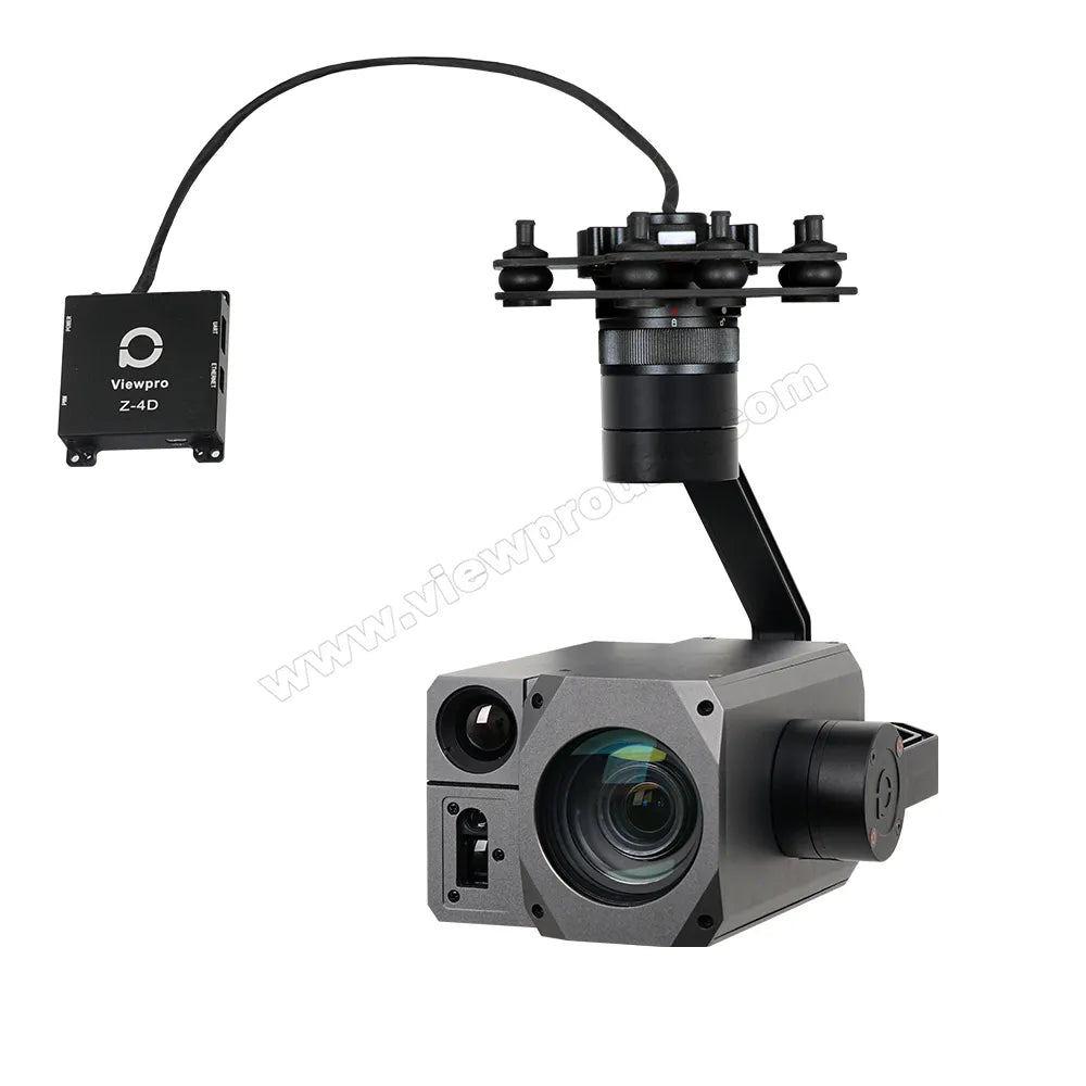 ViewPro H30T Gimbal Camera: Single sensor, Dual sensor, Triple sensor with 4.17MP SONY STARVIS CMOS Sensor. Equipped with 1000m Laser Rangefinder and 19mm lens. Supports thermal vision up to 640*512 Al and has a 12pum Thermal range finder.