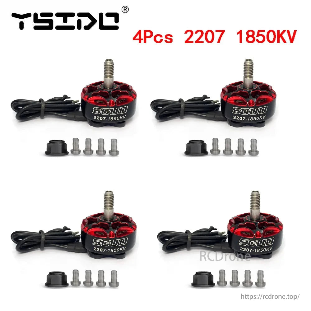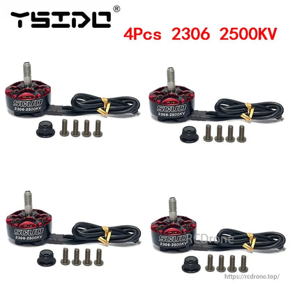 YSIDO Scud 2207/2306 Brushless Motor, 3-6S Lipo. Models: 2207-1850KV, 2306-2500KV, 2306-1750KV. KV ratings: 1750KV, 1850KV, 2500KV, 2550KV. Compact design for high performance.