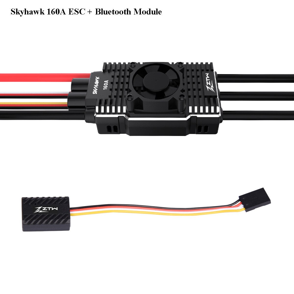 The ZTW New Upgraded 32-Bit Skyhawk 130A/160A ESC can be programmed via cell phone APP or LCD program card.