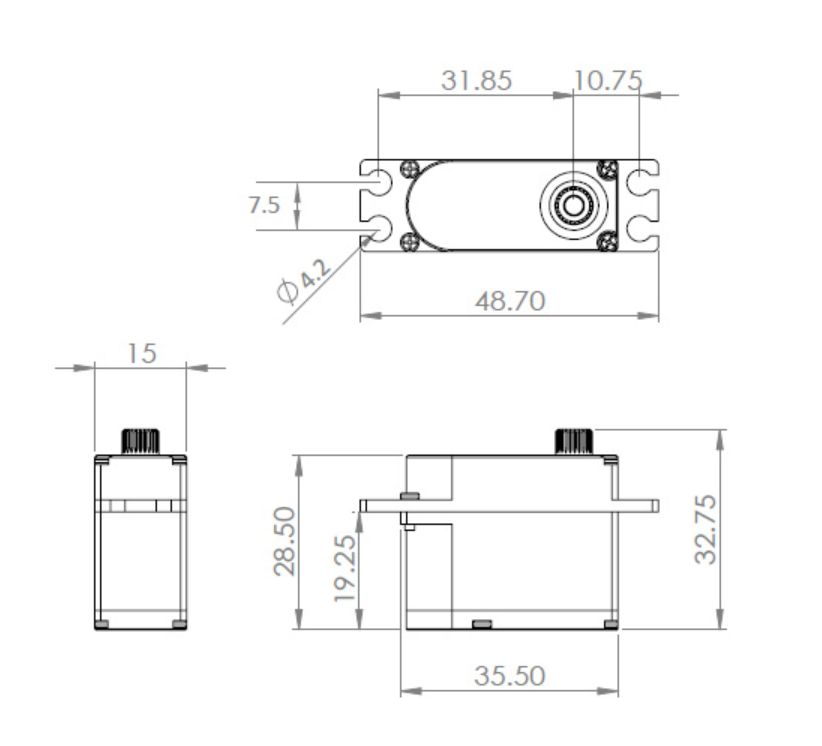 - @6.0V: 115.2 oz-in (8.3 kg-cm)