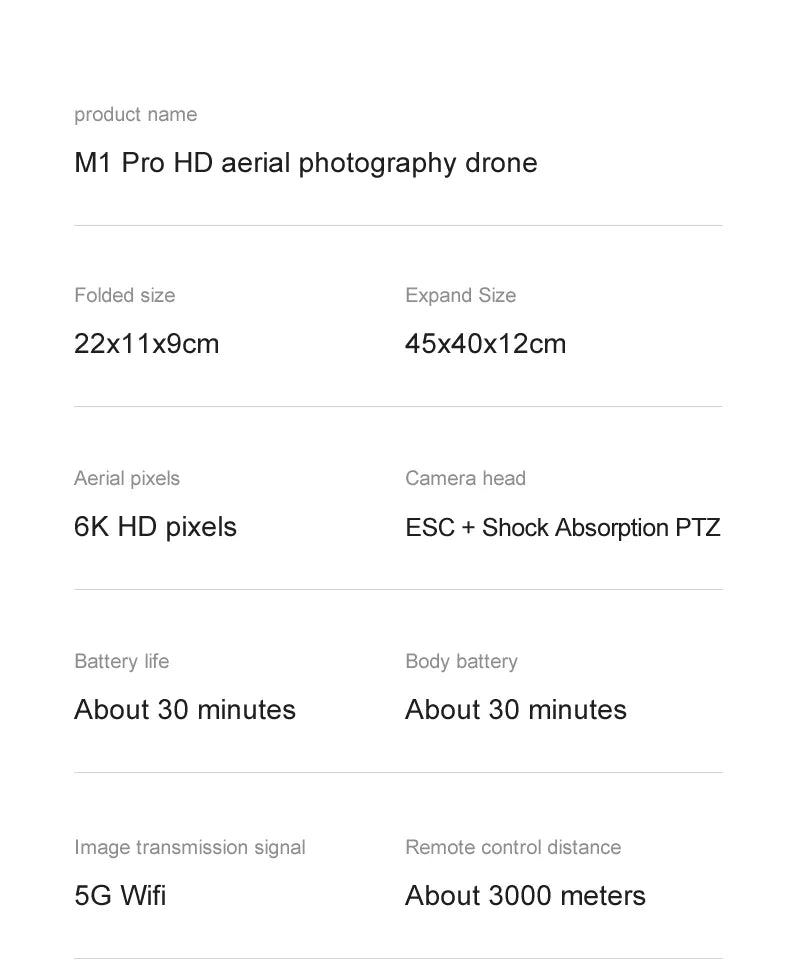 M1 Pro 2 drönare Detaljer