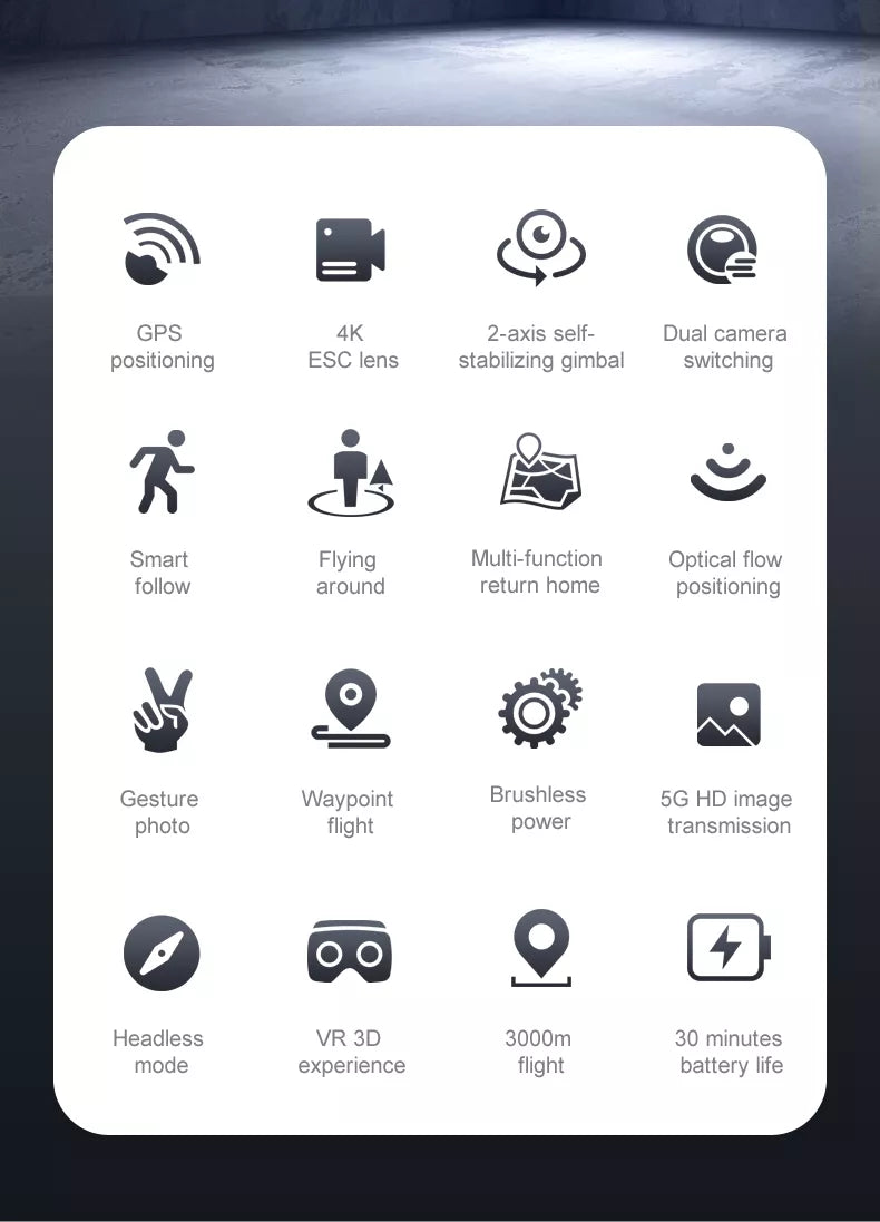 2, ①GPS intelligent följ; (2) Bild följande: identifiera GPS-signal för automatisk efterflygning.