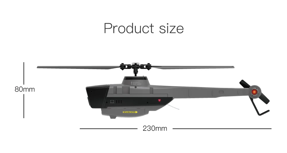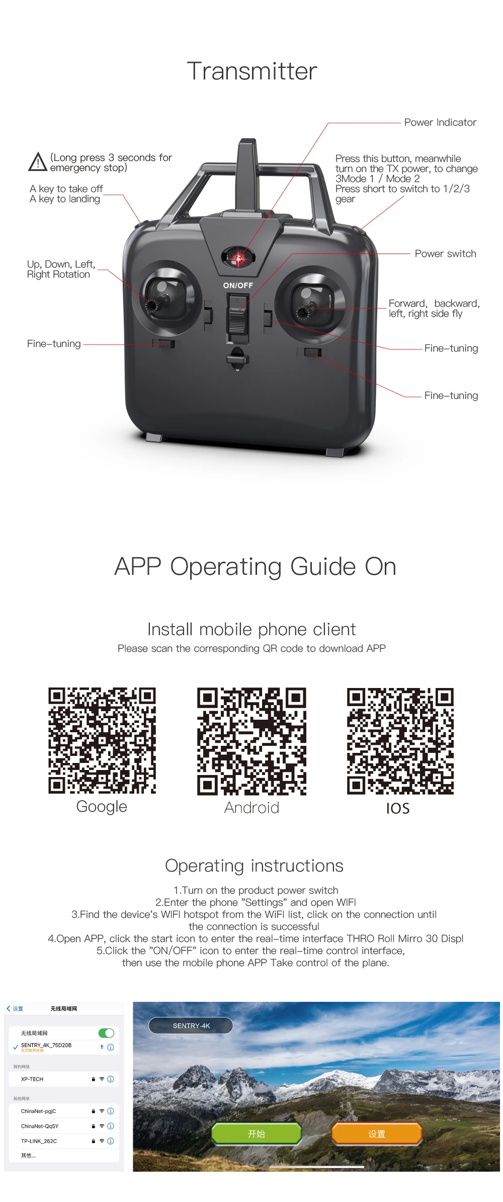 1; Skruvlös design, propellern är designad utifrån aerodynamiska principer för att ge stark kraft och självstabilitet i kroppen.Enkel 4-kanalsdesign, ultrastabil flygning med 6-axligt gyroskop;