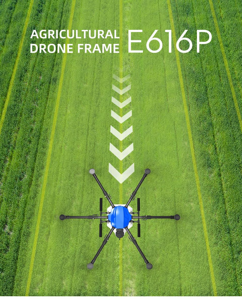 E616P 6-axlig 16L jordbruksdrönare är uppgraderingsversionen av E616S. Jämfört med E616S är den största skillnaden integration. Strukturen på E616P:s flygkropp har förbättrats. Kroppen skiljer sig från den ursprungliga kolstrukturen, och den förbättrade produkten bearbetas genom formsprutning av plast. E616P växtspruta med A30-strömsystemet är kompatibel med alla flygkontroller, såsom PIX, DJI, JiYi, Topgun FC och andra elektroniska komponenter på marknaden.