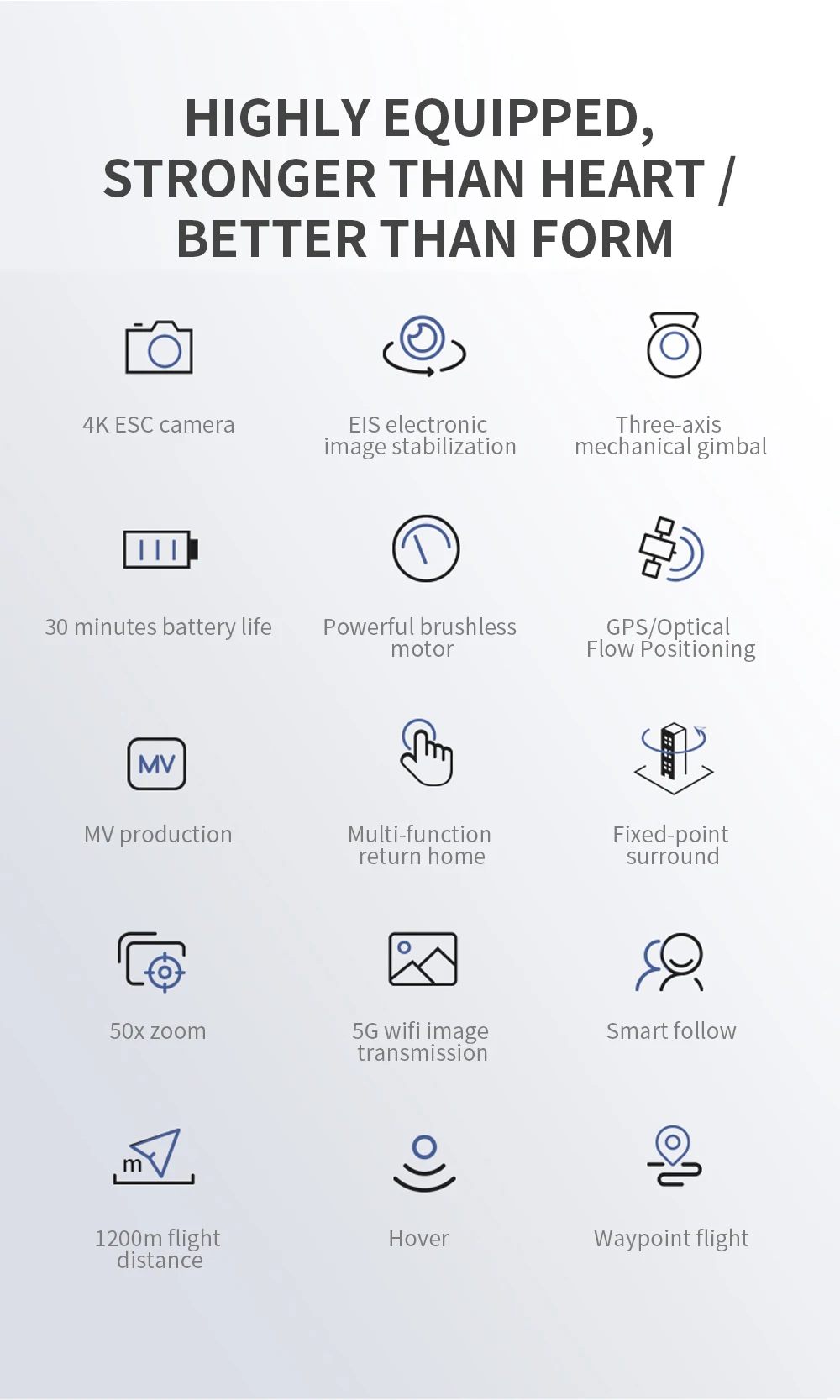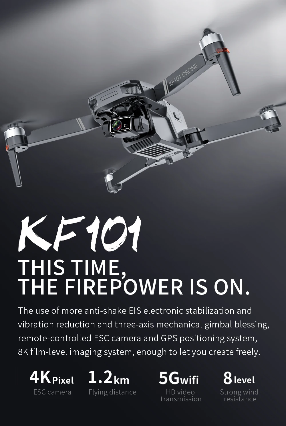 Paketet innehåller: Batterier Paketet innehåller: Fjärrkontroll Paketet innehåller: Användarinstruktioner Paket innehåller: USB-kabel Ursprung: Kina Färdighetsnivå för operatör: Nybörjare Färdighetsnivå för operatör: Mellan Motor: Borstlös motor Modellnummer: KF101 Mobilt enhetssystem version: iOS 8.0 eller senare / Android 4.4.4 eller senare Material: Plast Material: Metal Inomhus-/utomhusanvändning: Inomhus-Outdoor Bild överföringsmetod: 5G Gestkontroll (fotografering / video): cirka 1-3 meter GPS Följ mig: cirka 30 meter Bildhastighet: 25fps Flygtid: cirka 24 minuter Funktioner: Wi-Fi Funktioner Funktioner: App-kontrollerad Funktioner: Integrerad kamera Funktioner: FPV-kapabel Funktioner: GPS Funktioner: Auto Return Mått: 20,0*11,0*8,0 CM Kontrollläge: MODE1 Kontrollerbatteri: 3,7V 1000 mAh Kontrollkanaler: 4 Kanaler Laddningsspänning: 11,1V 2500MAH Laddningstid: ca 6 timmar Kameramonteringstyp: 3-axlig Gimbal Borstlös motortyp: 1806 Flygfotografering: Ja Justerbar vinkelkamera: Justerbar kamera med sändare, 90
