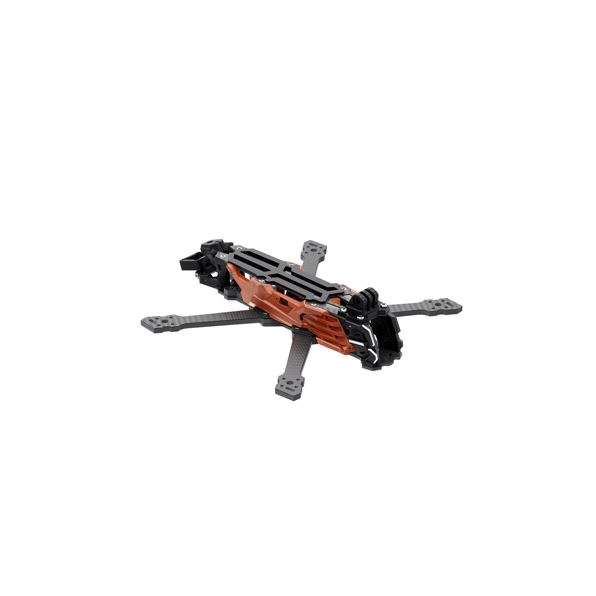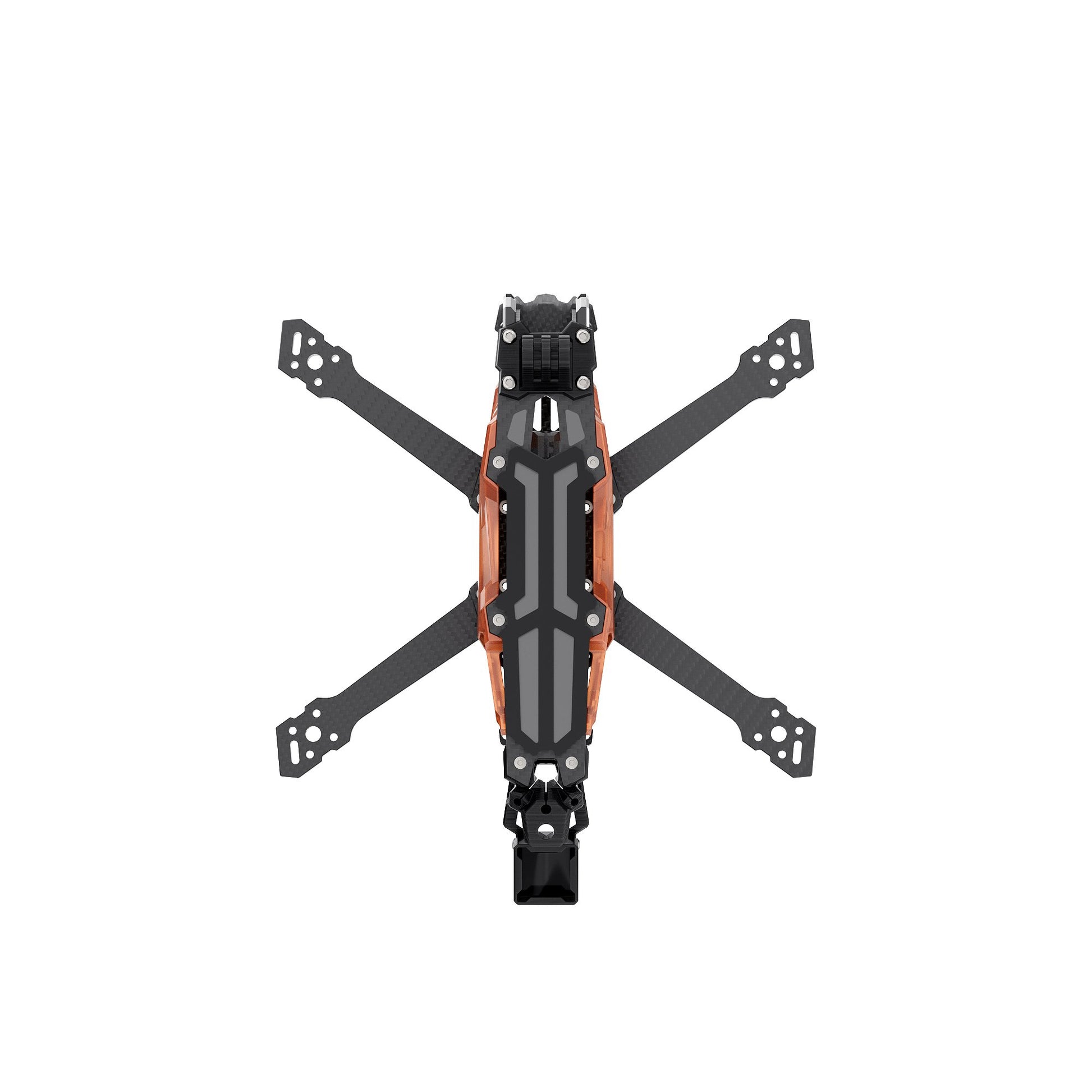 Mikono ya nyuzi kaboni ya mm 5 huhakikisha uimara. Ulinzi wa mara mbili, muundo wa toleo la haraka, na kipandikizi cha lenzi ya alumini inayooana na O4 Pro VTX zimejumuishwa. Paneli za pembeni zinazoongozwa na Mech na kipandikizi cha antena ya nyuma inasaidia adapta za SMA na antena asili.