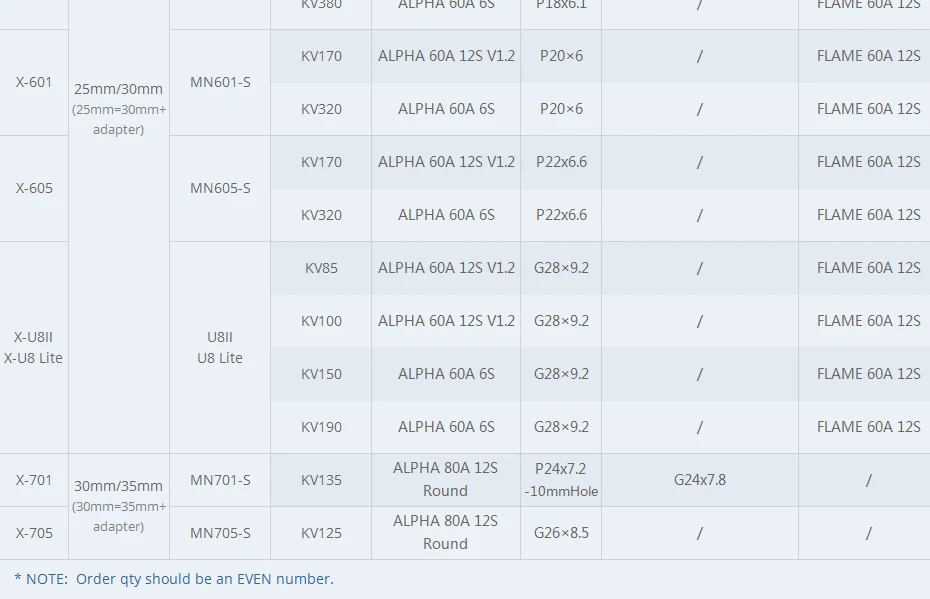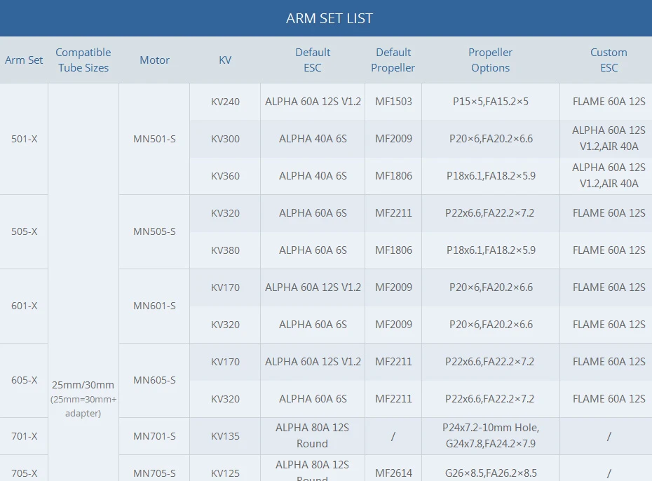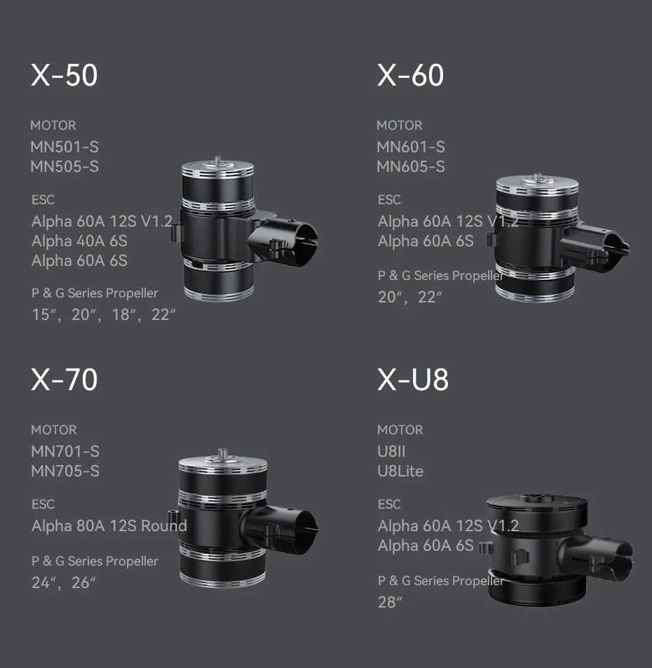 T-motor X-601 Koaksiyel Drone Kol Seti TEKNİK ÖZELLİKLER