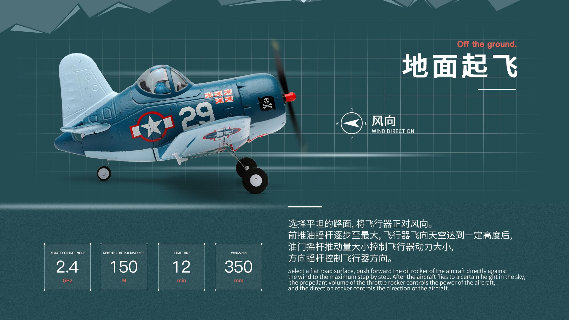 1. Dört kanallı tasarım, aileron kanalı uçağın sola ve sağa dönmesini kontrol eder, asansör uçağın yükselmesini, tırmanmasını ve alçalmasını kontrol eder ve gaz kelebeği kanalı uçağın hızını kontrol eder.