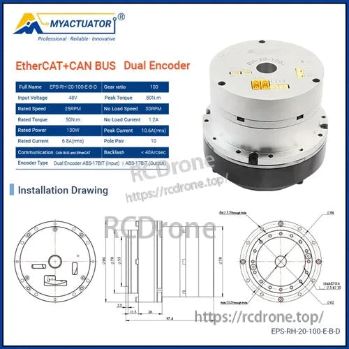 Оснащений протоколами зв'язку EtherCAT та CAN Bus та подвійними абсолютними енкодерами з роздільною здатністю 17 біт, RH-20 забезпечує виняткову точність повторного позиціонування (<0.01°), що робить його ідеальним для гуманоїдних роботів, колаборативних роботизованих рук, мобільних роботів та інших точних застосувань.