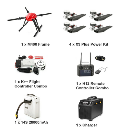 Промисловий дрон RCDrone M4000 Industrial Drone — це високоефективний багатоцільовий промисловий дрон, який підходить для різноманітних операцій, таких як пожежогасіння, порятунок, інспекція та геодезія. Цей безпілотник має чудову стійкість до вітру, тривалий політ і велику вантажопідйомність. Основні характеристики включають: розгорнутий розмір 1100×1100×600 мм, загальну вагу 12 кг, максимальне корисне навантаження 10 кг, розумний акумулятор 14S 54000 мАг і максимальну швидкість польоту 15 м/с.