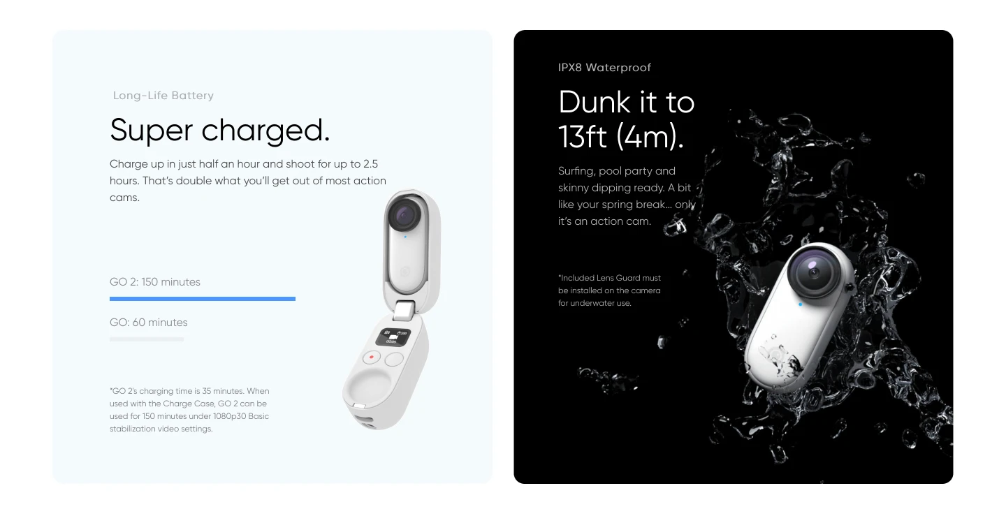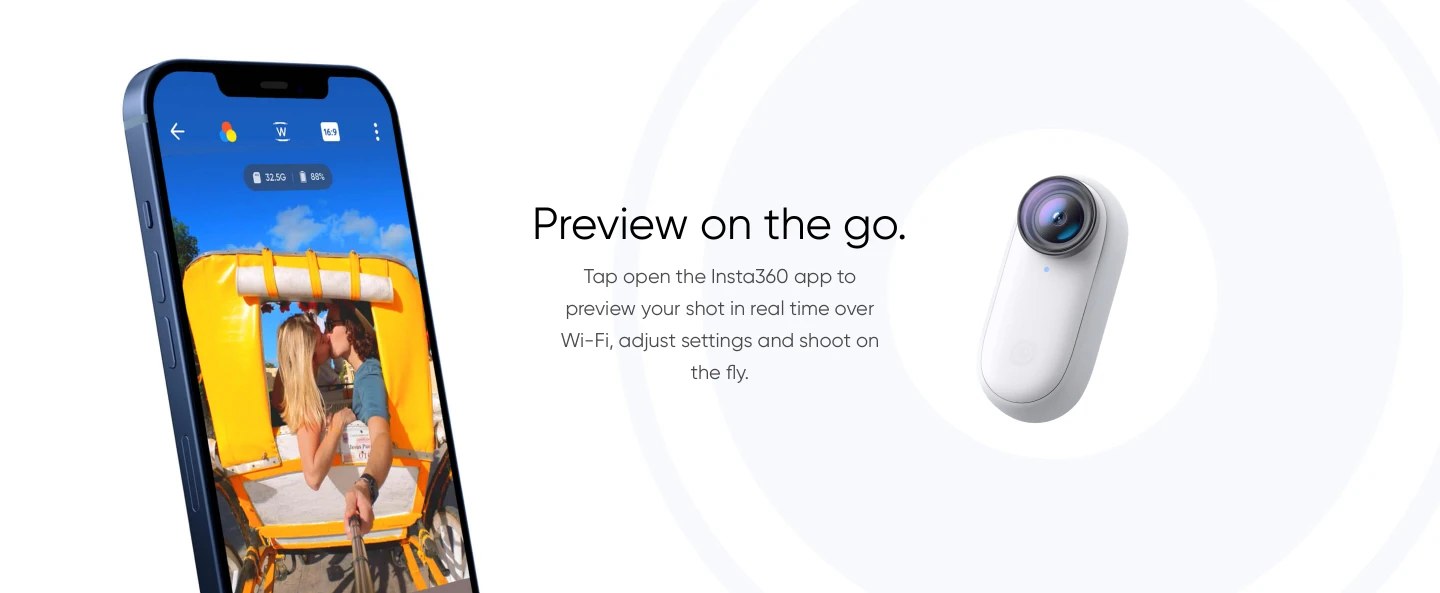 單機包括 1 個 GO 2、1 個充電盒、1 個鏡頭護罩(默認預裝在鏡頭上)、1 個磁鐵吊墜、1 個樞軸支架、1 個簡易夾和 1 條 Type-C 充電線。
