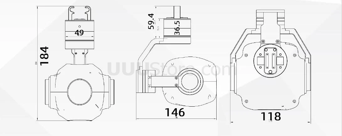 雲台支持360度旋轉。 三軸雲台具有智能雲台調速功能:快速和低速模式。 快速模式用於小變焦範圍,使雲台控制靈敏快捷。 低速模式用於較大的變焦範圍,它使您能夠更準確地瞄準目標。 這款三軸雲台還具備一鍵回中功能。