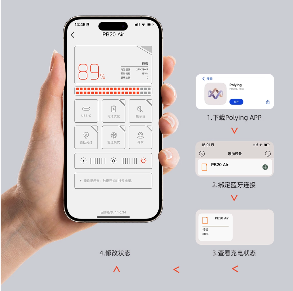 LKTOP PB20 Air 5000mAh 超薄便攜式充電寶結合了 9.6 毫米的纖薄機身和高級 CNC 全鋁外殼,為您提供一款優雅、口袋友好的充電器,您可以每天攜帶。這款 5000mAh 超薄便攜式充電寶僅重約 95 克,輕鬆放入您的錢包、口袋或手提包,同時為手機、平板電腦、手錶、耳機等提供高達 20W 的 PD 有線快充。通過 APP 智能控制、語音提示和內置尋找功能,您可以實時檢查電池狀態,並通過一鍵定位充電寶,確保備用電源隨時可用。